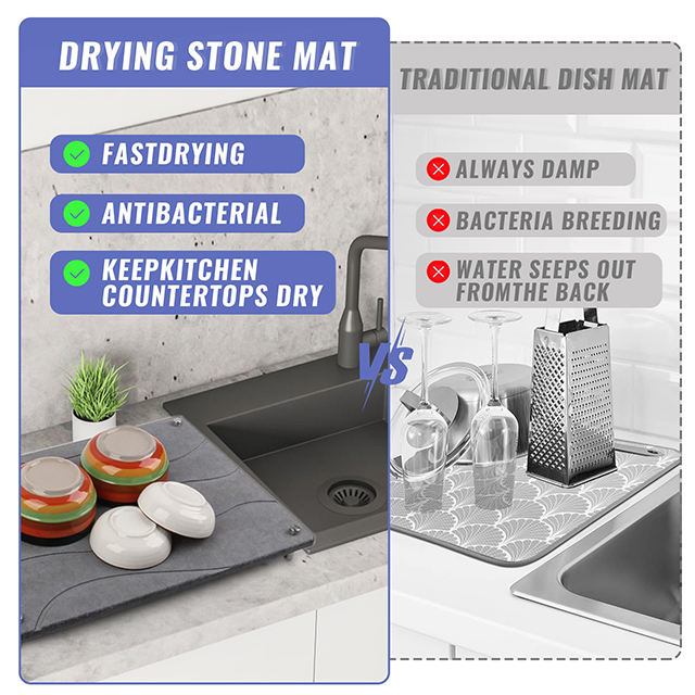 Upgrade your kitchenware offering with our Wholesale Ultra Absorbent Stone Dish Drying Mats. Made from natural diatomaceous earth, these mats absorb water instantly and dry in minutes, keeping countertops spotless. Perfect for retailers or bulk buyers, these mats combine eco-friendly materials, a sleek design, and unmatched durability for everyday use.